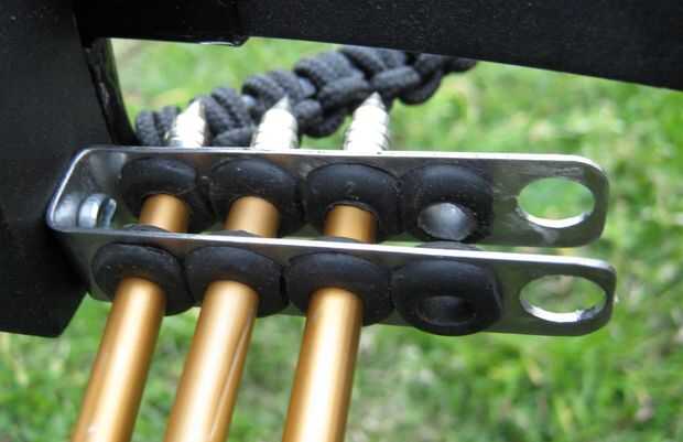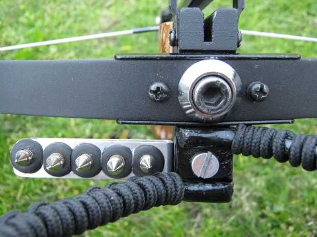 El clip pasador era una tira de acero inoxidable, que es un metal bastante difícil de trabajar con, aluminio sería mucho más fácil, que estaba doblado en forma de U y se atornilla en un agujero existente la xbow. Los agujeros fueron perforados en la tira de metal que tenía tapones de hule insertados que sujetan los ejes de la flecha.