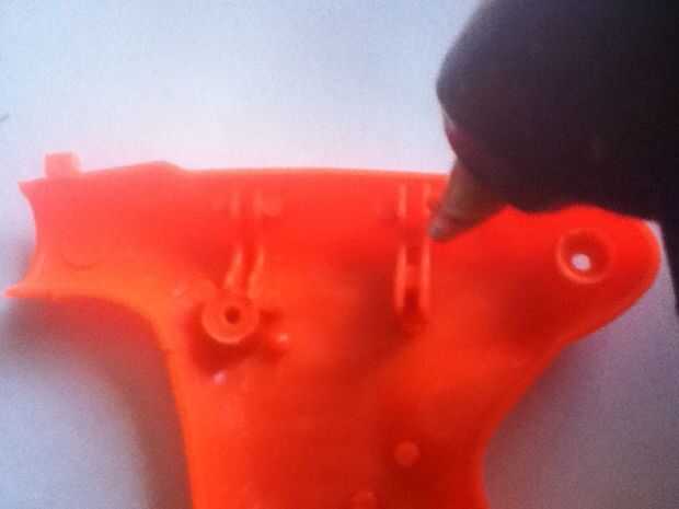 Aplique pegamento caliente en el mismo lugar en la otra mitad de la pistola.