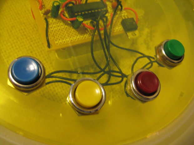 Inserte sus botones en el acrílico. Alambre de tierra junto a todos los botones y el otro cable a los pines correspondientes en el PCB.