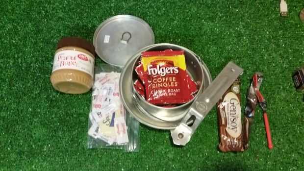 También guardo un poco de sal, pimienta y café Folgers singles. No saben como Starbucks pero es mejor que nada y sin duda mejor que la instantánea. Si usted es frío y húmedo y el mundo ha terminado, una buena taza caliente de café parece que sería un lujo bastante grande para no mucho peso. Sal/pimienta es bastante autoexplicativo, pero si usted ha tenido ardilla o conejo o Dios sabe qué más asado sobre un fuego abierto, sal seguro que ayuda.