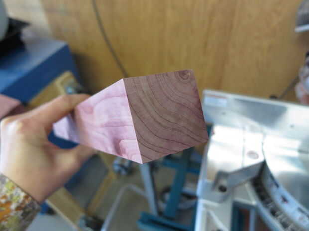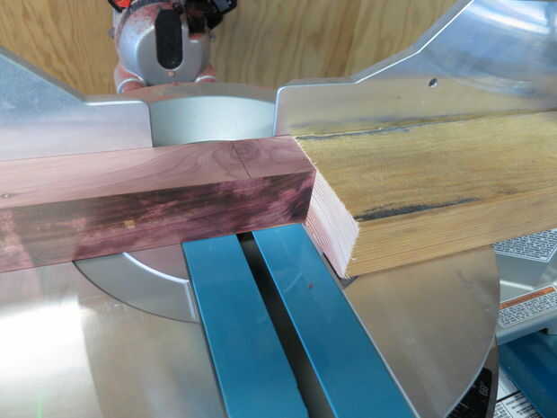 Me dejé un trozo de nuez en menos de 24" de largo, para ser utilizado como un marco más tarde. No utilizar la Sierra de mesa en mi 3" por 3" pieza de madera.
