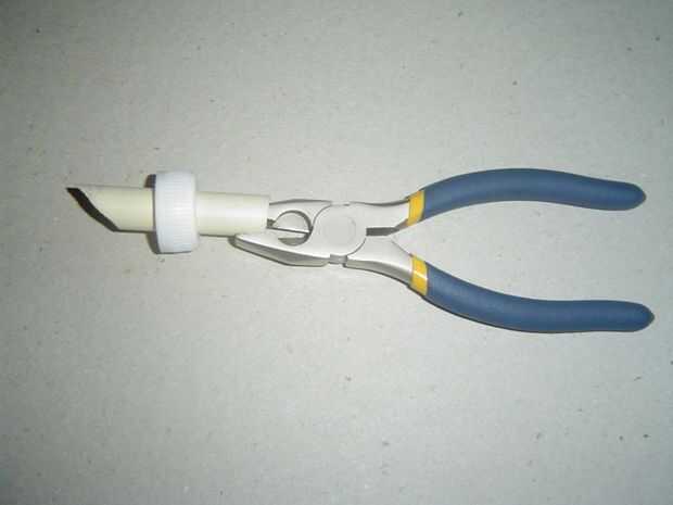 4. Perfore un agujero de 9/16 de pulgada en la tapa y ampliar con un trozo de tubería de CPVC de 1/2 pulgada como se muestra. Coloque la tapa en la botella.