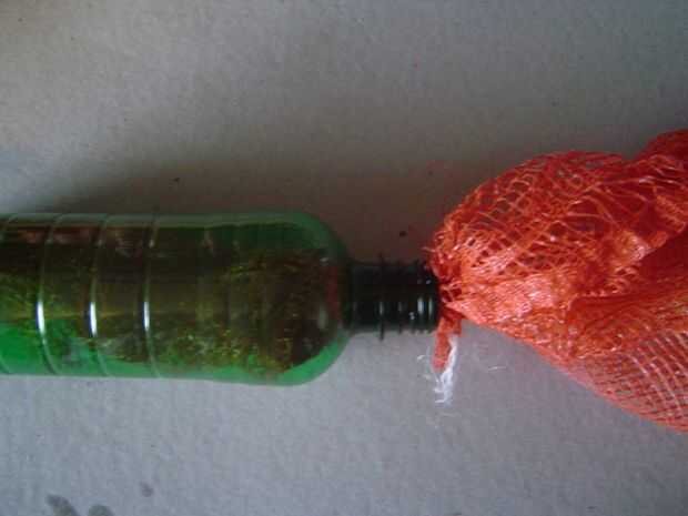 3. cosas de malla en la botella como se muestra. Distribuir uniformemente dentro de la botella para evitar canales donde pueden formar y ejecutar grandes burbujas.