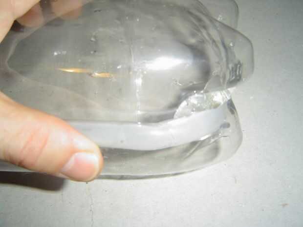 1. Corte una ranura de 5/16 de pulgada en una de las arboledas empotradas en la parte inferior de la botella de 2L como se muestra.