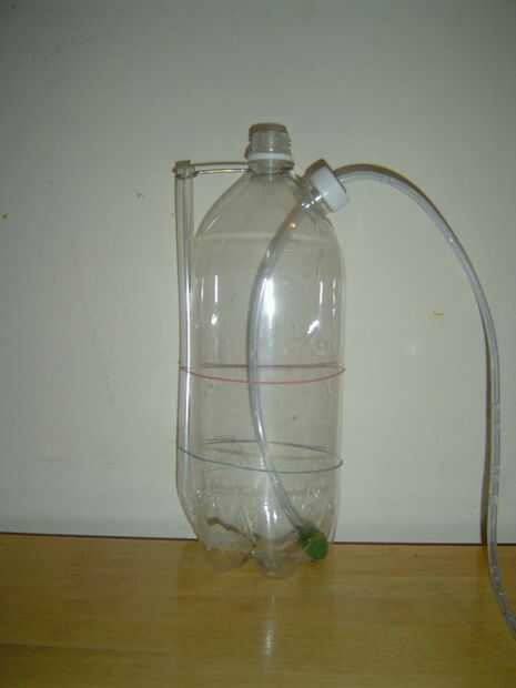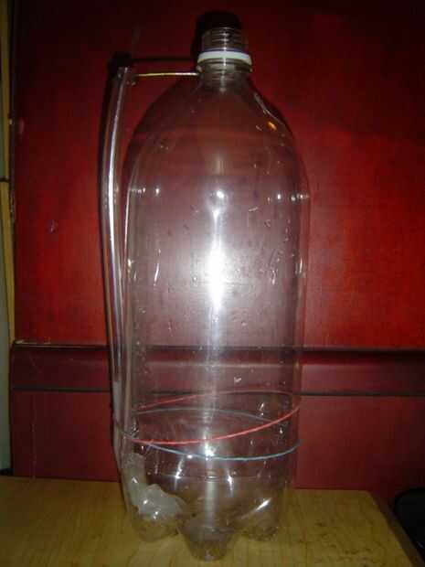 3. doblar el alambre como se muestra y usarlo como un clip en el cuello de la botella, para asegurar el otro extremo de la tubería de 7/16 de pulgada en posición vertical.