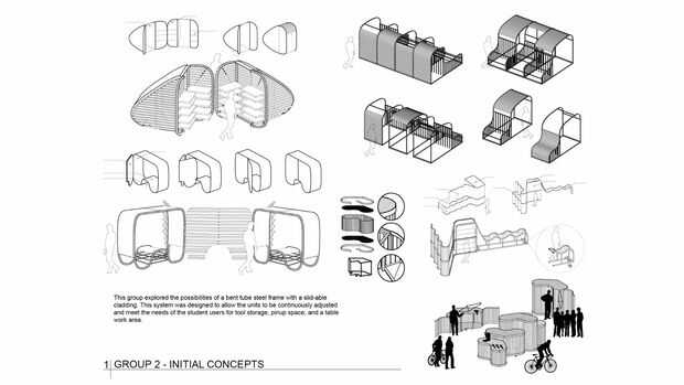 El proceso de diseño comenzó con un taller de diseño rápido, dos semanas en el estudio de movilidad de prototipos. Los estudiantes trabajaron en equipos de cuatro para testar ideas y estrategias materiales como una manera de establecer una dirección de diseño para el semestre. Este ejercicio se pretende generar una multitud de ideas para su consideración y evaluación por toda la clase. El resultado final no era un sistema completamente desarrollado, sino más bien una idea convincente diseño acompañado de análisis programático y ensayos de materiales que en conjunto constituyen suficiente prueba de concepto. Los equipos pidieron hasta centrarse en un único enfoque material de la estructura subyacente del diseño.