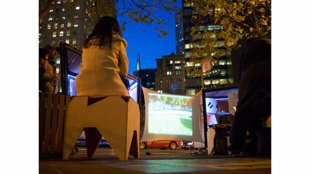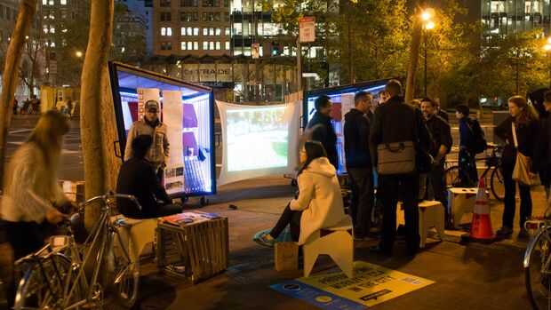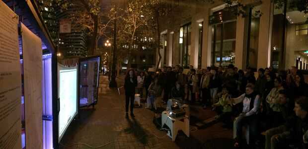 Los módulos de arte móvil organizó una serie de eventos en la calle de mercado durante el festival de tres días, mostrando estudiante trabajo y Facultad la investigación del CCA: