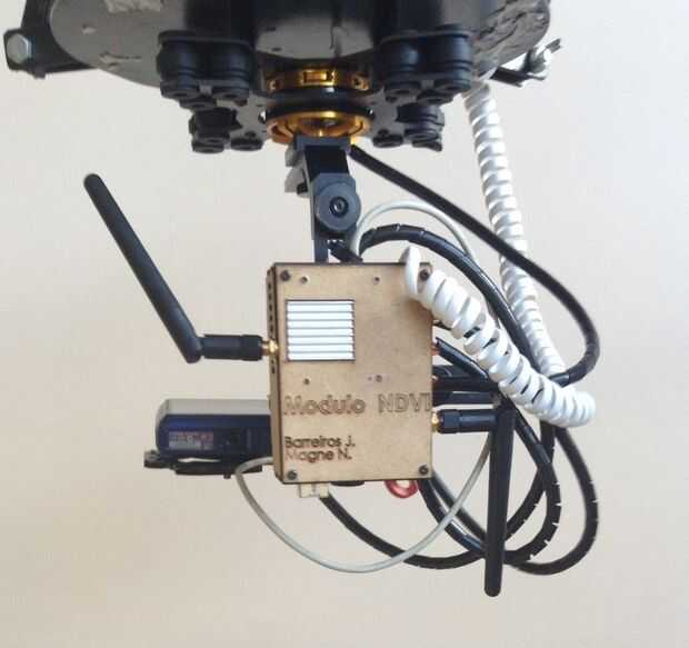 Este trabajo presenta la construcción de un sistema de imagen multiespectral de NDVI para plataformas aéreas. El sistema ha sido construido en base de dispositivos de consumo como Point & Shot cámara con gatillo, enfoque y control de zoom, filtros de Gel, estabilizador de eje libre, 5.8Ghz RF transceptor para transmisión de video y transceptor ZigBee para enlace de datos.