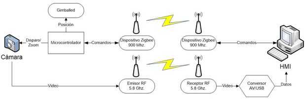 En este paso configuramos la comunicación, para 5.8GHz RF transceptor para transmisión de video y 900 MHz. transmisor-receptor de ZigBee para enlace de datos.