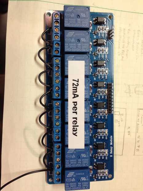 Fuente de 5v desde el circuito de regulación de alimentación de 5v para el relé de activación de la porción de la placa de relé (en el lado flaco). Conectar toma de tierra de esto así (realmente de tierra común).