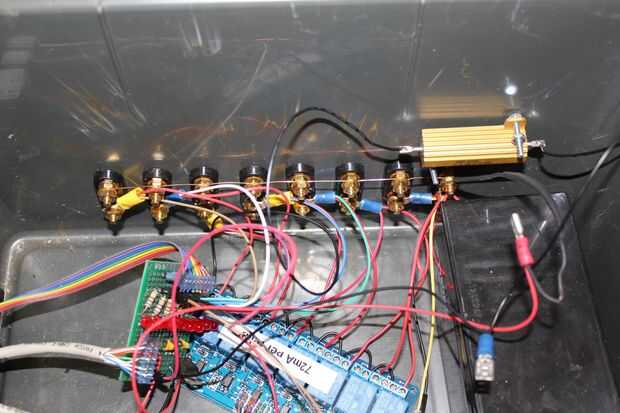 3 ohmios, resistencia de 50W se conecta en serie al cable negro dejando mensajes de centro de la placa de relé y luego al terminal de tierra de la batería de plomo 12v.