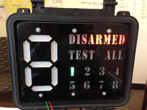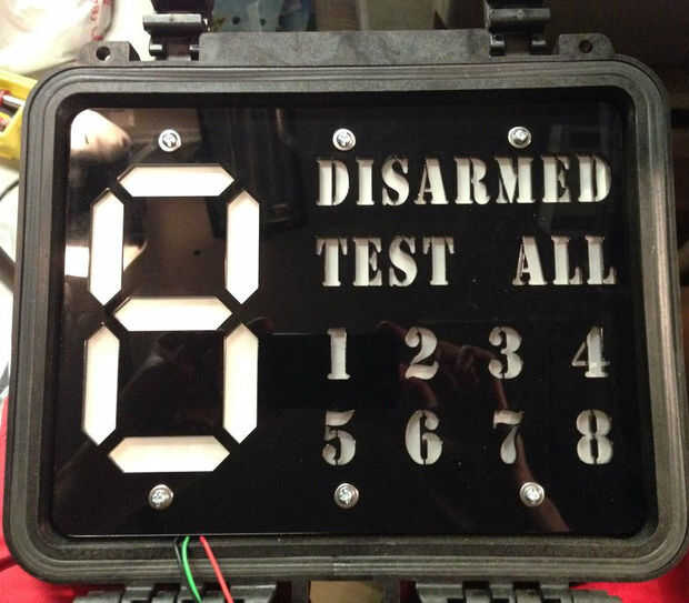 Quería una pantalla agradable del lanzador para que nadie disfruta el show de fuegos artificiales pudiera ver qué nodos eran activos, la cuenta atrás y si los lanzadores de dispositivo seguros acercarse. Todo lo necesario para ser lo suficientemente grande como para leer a distancia, ser fácilmente controlado desde un Arduino y buscar profesionales. Yo he experimentado con NeoPixels (WS2812B RGB LED) con algunos de mis otros proyectos (Publicada en Instructables, Échales un vistazo!) y resultaron para ser el ajuste perfecto para mi aplicación. Lo mejor de todo que lo harían sólo requiere un pin de datos de Arduino! Podido con LEDs individuales controlados mediante registros de cambio pero que hubiera sido más tedioso de programar y ha tomado más circuitos dentro de la pantalla de visualización vivienda que quería mantener muy delgada. Quería que la exhibición del conjunto a ser retenidos en la tapa de la caja, que no era de mucho espacio.