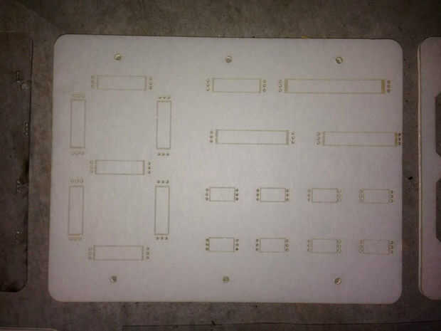 Dos piezas de plexiglás también fueron cortados con el cortador del laser. La película de la ventana se aplicó a éstos.
