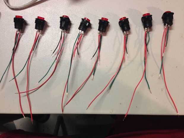 Será más fácil de alambre en el extremo del componente de botones, interruptores y botones antes de instalar en el panel de control. Asegúrese de no alambre a los módulos individuales todavía, porque no podrás conseguir en el panel si haces eso (al menos los botones e interruptores). He adjuntado una imagen real o el esquema de cableado de mi diagrama original de Fritzing para ayudar en su comprensión.