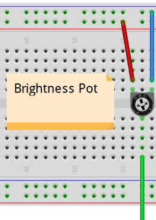 El potenciómetro actúa como un divisor del voltaje aquí dar el Arduino una señal entre cero voltios y 5 voltios. Utilizamos para contar cómo brillante que las luces NeoPixels y botón. Soldar un cable rojo hacia el V +, esto irá a nuestro autobús común de 5v. Soldar un cable negro con el lado de tierra, esto irá a nuestro autobús común de la tierra. Soldar un cable verde con el conector medio, este es el limpiador y conectará con A0 en el Arduino.