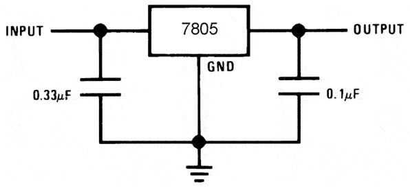 Debido a mi ignorancia he intentado configurar el LM7805 por sólo suministro de 9 voltios en tierra y sacar los 5 voltios directamente a mi carga. Mientras que mi multimetro dijo que todo era bueno con esta configuración y estaba consiguiendo un agradable, limpio 5 voltios hacia fuera tan pronto como pondría cualquier carga en el sistema de la fuente de 5 voltios fallaban y se comportan erráticamente. Después de una rápida investigación en línea encontré que necesitaba suavizar condensadores a ambos lados de la tensión de entrada y salida. La pajina encontre llama para un casquillo de cerámica 0,33 micro faradio entre 9v y GND y un condensador de cerámica de 0.1 micro faradio entre 5v y masa. Con esos dos en su lugar el regulador trabajado maravillosamente.