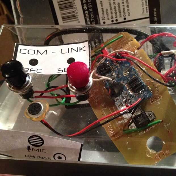 Que conectar el módulo registrador para dos botones robustos y colocó el micrófono debajo de ellos