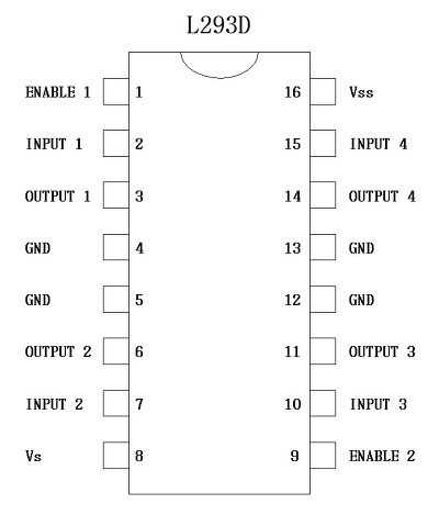 1 conectar los pines con la siguiente (hice esto en ambos chips L293D) :