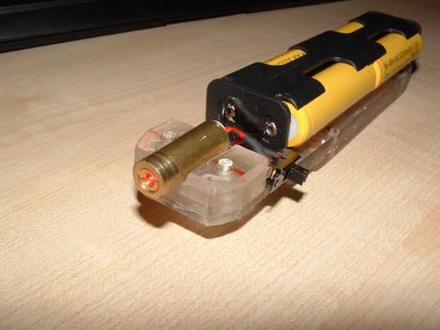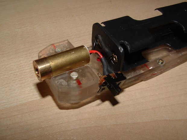 También hizo una muy básica encendido circuito con un interruptor SPDT, pero sólo aseguró el módulo láser blu-tak por el momento.