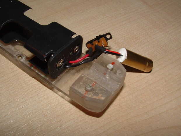 El portapilas, otra vez no encendida con epoxy, así parcialmente el fusor un par de tornillos en la división de la pared, a través del acrílico.
