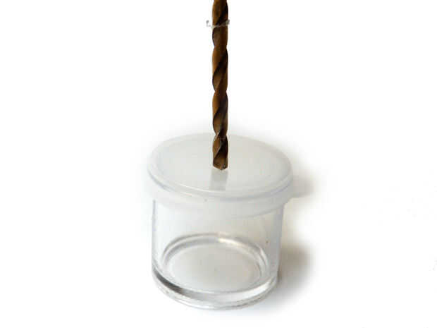 Perfore un agujero de 1/8" en la tapa de la taza de la pintura.
