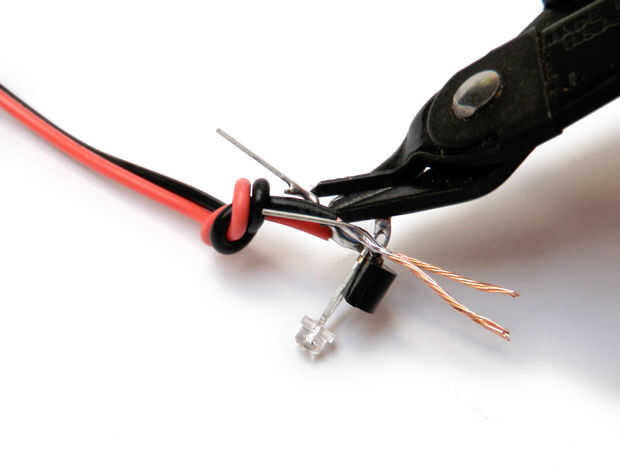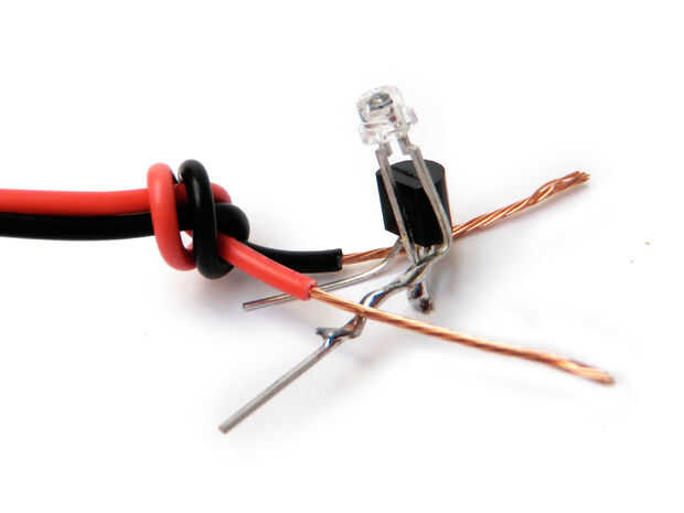 La pierna más larga desde el sensor de luz debe llegar soldada al cable rojo.