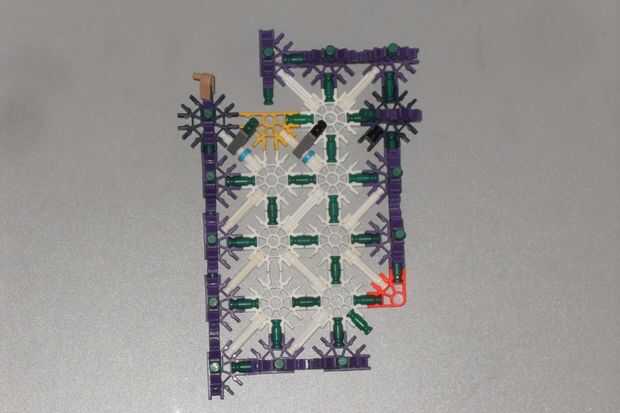 Este paso muestra cómo construir la parte que alberga el mecanismo de deslizamiento. Si te quedas sin blancos conectores de 8 vías, use los conectores azules de 7 vías. Un montón de aleatorio verde/negro barras para mantener suave el mecanismo.