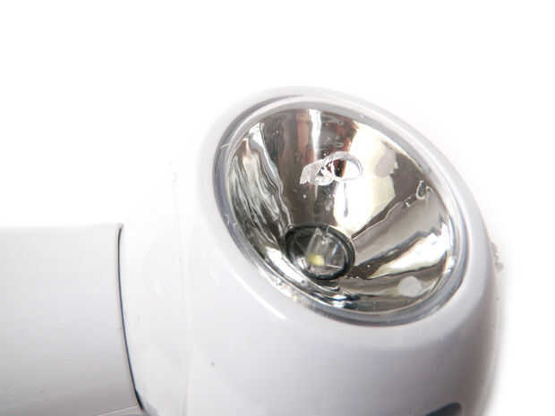 Perfore un orificio de 1/4" en la protectora de la lente directamente sobre uno de los LEDs de luz nocturna.