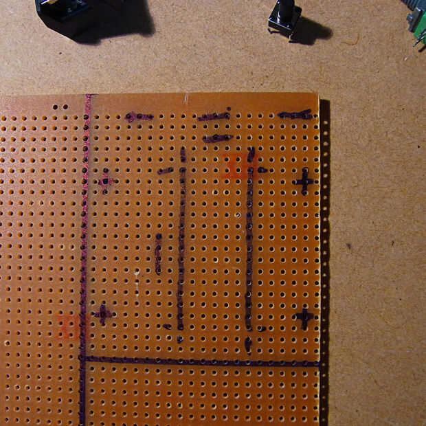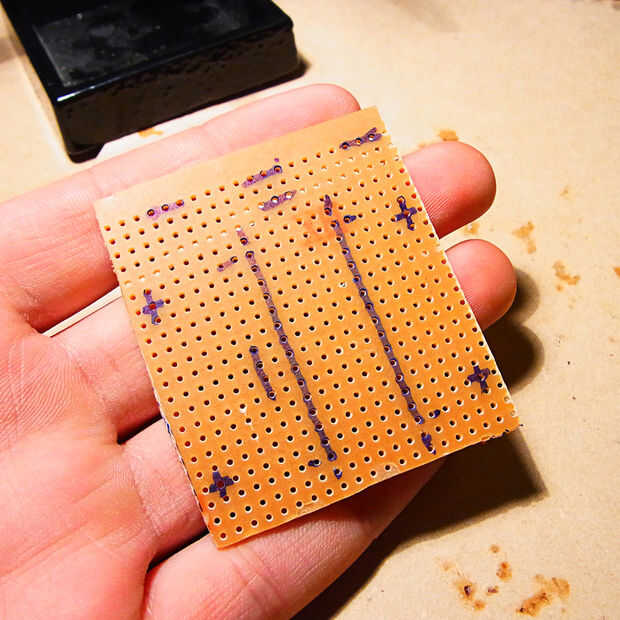 3. Cuando estés contento con esto, la marca usando el marcador permanente. También marca-para arriba el contorno del corte - dejar una o dos filas de agujeros de donde realmente quieres hacer, dependiendo de cómo usted corte el tablero puede romper en pedazos. Si eres más seguro usted puede conseguir un exacto corte ir para él!