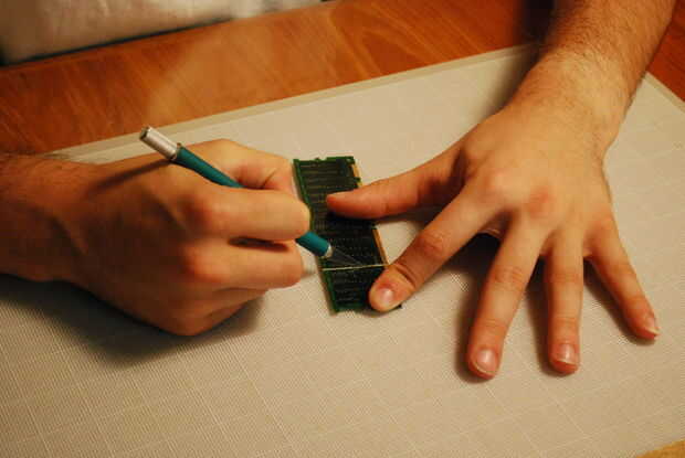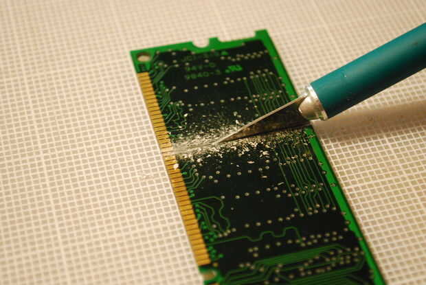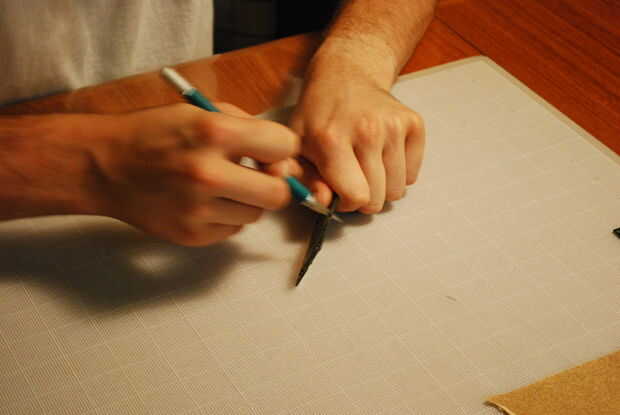 Deslice el cuchillo Hobby ambas maneras (que va más rápido por raspar y limpiar las partículas que va a quitar).
