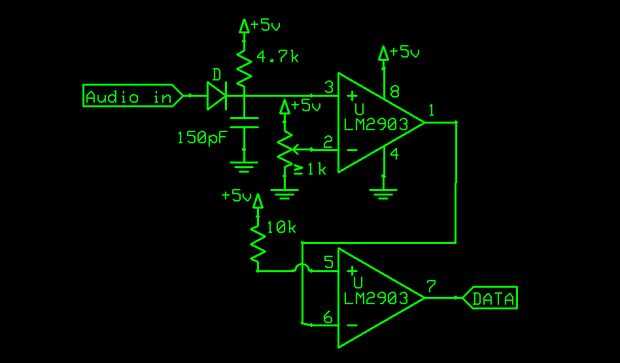 Básicamente es un detector de envolvente en la inversión y un voltaje variable a la entrada inversora del primer comparador. Entonces la salida es amortiguada e invertida por el segundo comparador. Es simple pero tomó algún desarrollo. Traté de amp op y disparadores de Schmitt, pero que aunque demasiado ruido, o no tenía el poder necesario para la lógica de la impulsión. Ensobrado para Schmitt funciona muy bien, pero requeriría un paso hasta el transformador. (demasiado grande para mi gusto y 13 gramos)