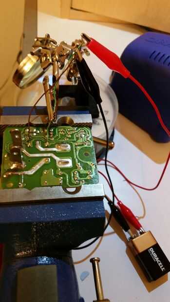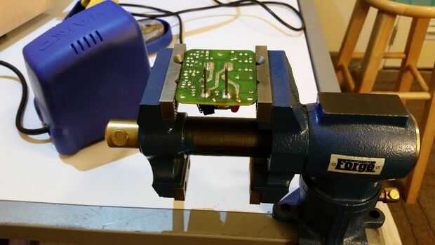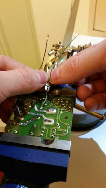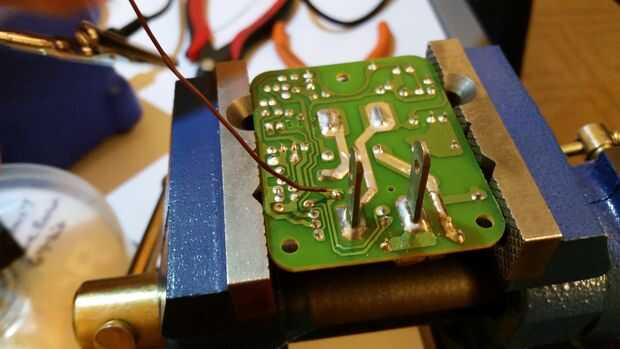 Los dos pequeños cables a los pines de la bobina de relé que has encontrado antes de la soldadura. Usé un tornillo de banco para sujetar la placa de circuito en su lugar y ayudando a las manos para sostener los cables. No se olvide de estañar la punta del soldador entre empalmes de la soldadura.