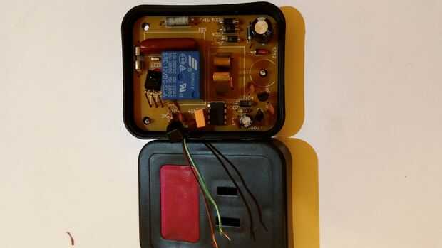 Perfore un pequeño agujero en el lado de la caja que usted puede poner los dos alambres a través. Luego poner el pcb en la parte inferior la mitad de la caja. Luego tomar una amarra y conéctelo a los cables para que no tire de la Junta y venir a través del orificio. Luego poner los cables por el agujero que ha perforado. Luego vuelva a la caja y vuelva a insertar los tornillos.