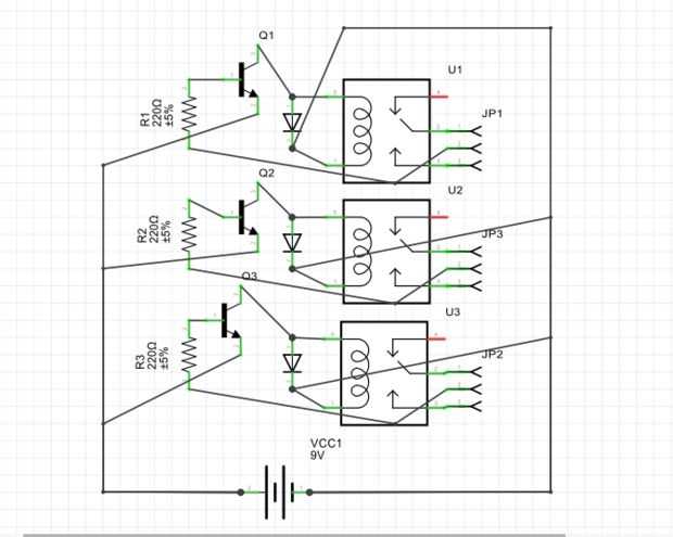 Uso amablemente la resistencia de 1K ohm en lugar del resistor de 220 Ohmios se muestra en el esquema de arriba y la fuente según requisitos de relé en lugar de '9V' en esquema.