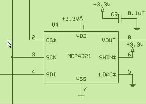 El DAC había utilizado aquí un MCP4921 de Microchip. Este DAC es realmente un dispositivo de 12 bits, pero sólo 8 bits de
