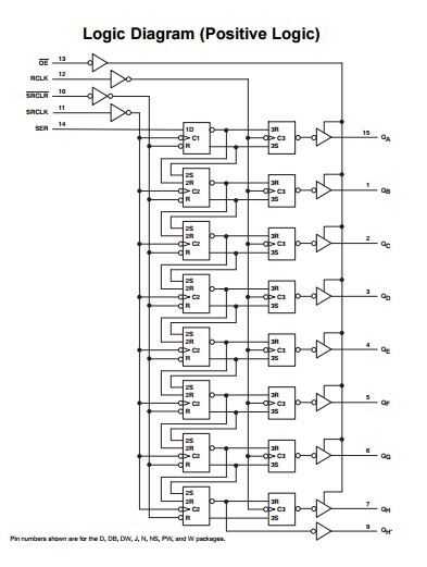 Todos los datos de serie van en Pin #14 y en cada señal de reloj los bits van a sus correspondientes pines paralelo-hacia fuera (Qa a Qh).