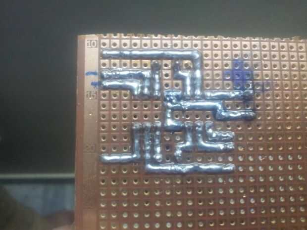 Ahora empezar a soldar, primero la soldadura de la base del CI, no L239D de la soldadura directamente, usar ic base para que el Ic se guardará de sobrecalentamiento que generalmente es un problema de novatos. Hacer pistas en veroboard mientras que mantiene su papel rugoso pistas de diseño en el frente.