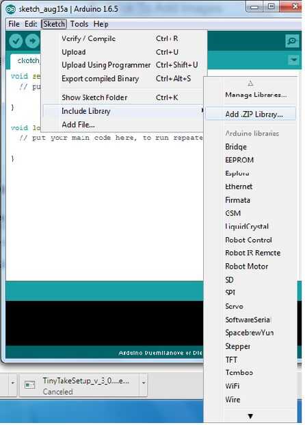 Como se muestra en la captura de pantalla anterior buscar el archivo ZIP e incluye la biblioteca después de incluir la biblioteca, cierre el IDE de Arduino y abrirlo de nuevo y luego se encuentra la biblioteca incluida.