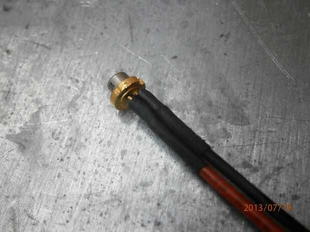 Por último, he añadido una cubierta de latón dorado que se ajusta en el caso de motor y tiene un agujero de 4mm para el diodo de láser de 3,8 mm.