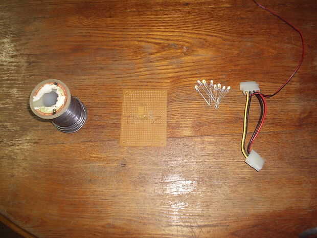 - Conector de alimentación Molex. Este se enchufa en el conector de alimentación molex en tu ordenador y proporciona energía a la placa de LED. Probablemente puede tira uno de ellos de un viejo ventilador de ordenador.