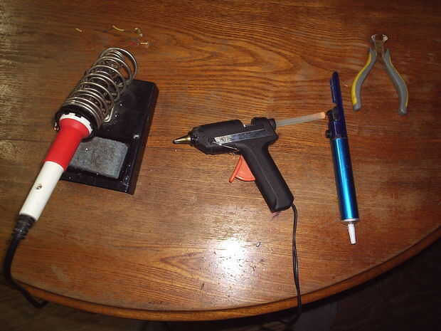 - Pistola de pegamento caliente. Esto es para pegar abajo los alambres sueltos.