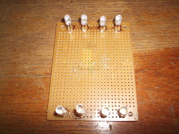 - La soldadura con cuidado sobre los LED. Utilice los cables para conectarlos juntos. Debe olvidar la soldadura rápidamente para que no dañar el LED con el calor excesivo.