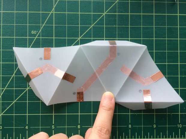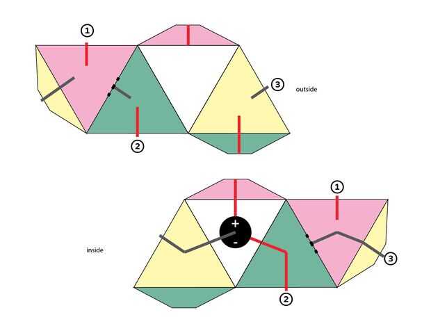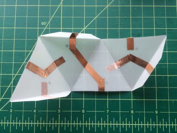 Podemos empezar a hacerlo. Hay una parte requieren un corte entre la parte roja y verde, y la cinta de cobre debe ir por la zona de corte. El circuito final se verá como las otras dos fotos.