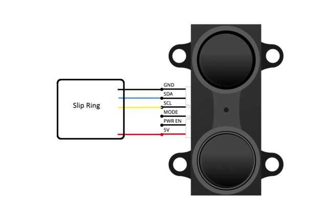 Ahora vamos a tener que suelde la conexión entre el anillo de deslizamiento y lo Lidar. Asegúrese primero de que corta los cables del Lidar y deslizamiento del anillo hasta alrededor de 7 a 10 cm. Se trata de hacer lo más limpio y más fácil caber dentro del módulo. Si no desea que la soldadura se puede utilizar una cinta de puente de hembra a hembra. La conexión de los cables va como sigue: