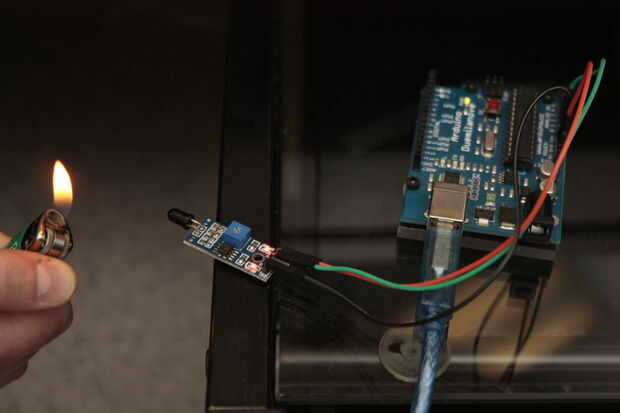 Para probar el Sensor de la llama y asegurarse de que es trabajo Conecte correctamente el VCC a una fuente de alimentación de 5v y GND. mover una fuente de llama con un pie de la parte frontal del sensor Ir y deberá encenderse el LED D0.