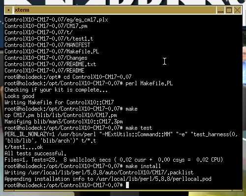 Debe mostrar una lista de archivos que estaban sin envasar. Cambiar al directorio ControlX10-CM17-0.07 y lea el archivo Léame para obtener más información sobre cómo proceder. Cuando hayas terminado la lectura, estos son los pasos a seguir para instalar el módulo: