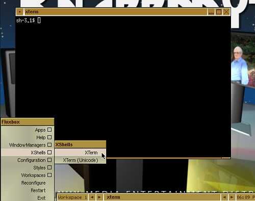 Una vez que estés en el escritorio KnoppMyth, haga clic derecho para acceder al menú raíz, seleccione XShells y, a continuación, Xterm. No tengo un montón de capturas de pantalla, porque es mucho el trabajo que voy haciendo para estos pasos en el terminal... pero te voy a mostrar algunas imágenes de los eventos clave para que sepa qué esperar.