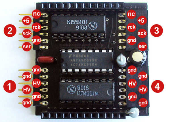 El tres ICs ahora pueden insertarse con seguridad en sus zócalos. Ni unos ni otros de estos circuitos integrados son de la variedad CMOS y no son especialmente sensibles a la electricidad estática. Tenga en cuenta que ICs de fábrica tienen pines en un ángulo ligeramente más amplio que caben en un zócalo del IC. Usted puede rodar suavemente un IC de lado doblar uniformemente en cada fila de pines para que luego puede ser insertado en su zócalo. Esto debe hacerse con cuidado, sin embargo, una vez que los pines del IC están bien dirigidos en los receptáculos de toma de corriente, fuerza considerable puede aplicarse para asentar el IC.
