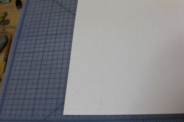 Utilice lápiz, regla, así como la ayuda de un arco de compás o el transportador para dibujar triángulos equiláteros como en la imagen (3 en cada lado, por ejemplo). Plan de donde tener pestañas para pegar.
