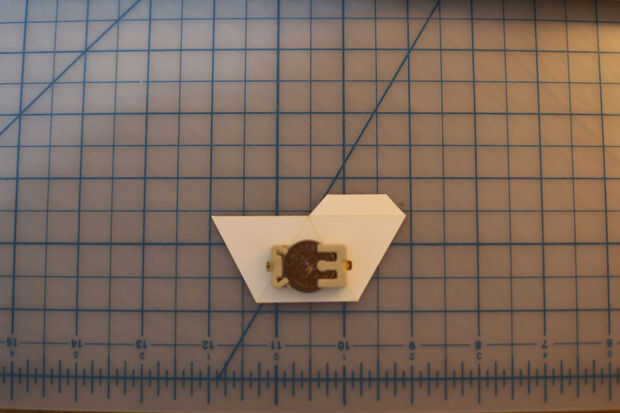 Cortar otra pieza con tres triángulos equiláteros con una ficha tan grande como el corte para el agujero del último paso (1.5 de cada lado, por ejemplo). Utilice pegamento de Elmer para conectar el soporte de la batería de su celular en el centro.